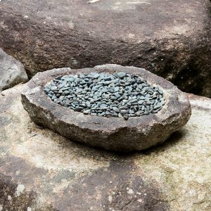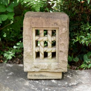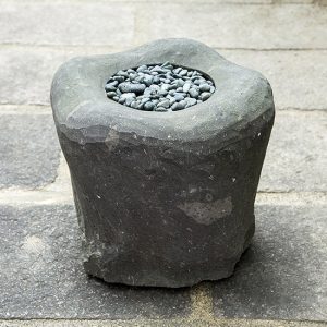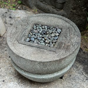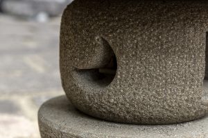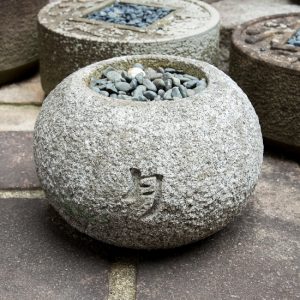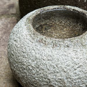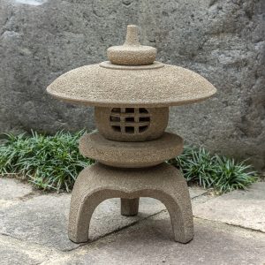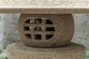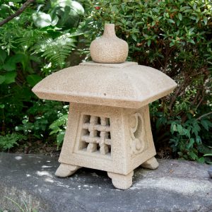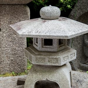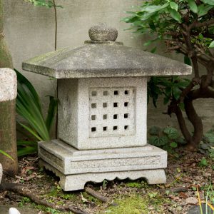 仏教の伝来と共に大陸から入ってきた石灯籠。仏前の献灯用だったものが神殿にも用いられるようになり、初めの頃は建物の前面中央に一基だけだったものが、桃山時代の初頭からは一対で建つようになったようです。灯篭も他の石造美術と同じに、仏教が隆盛した鎌倉時代に多く造られました。寺院に建つ灯篭とは別に「茶ノ湯」の文化が深まるとともに、灯篭は手水鉢、飛石などと一緒に露地を演出する重要な景物として用いられ始めました。江戸時代には織部灯籠、岬灯篭、雪見灯篭など独特の形に発展します。初めて灯籠を庭に取り入れたのは、茶人の千利休だと言われています。灯篭はその後、庶民の庭にも広く普及していきました。現代でも“和”への憧れは残っていて、お庭やお店に取り入れるためお問合せをいただいております。